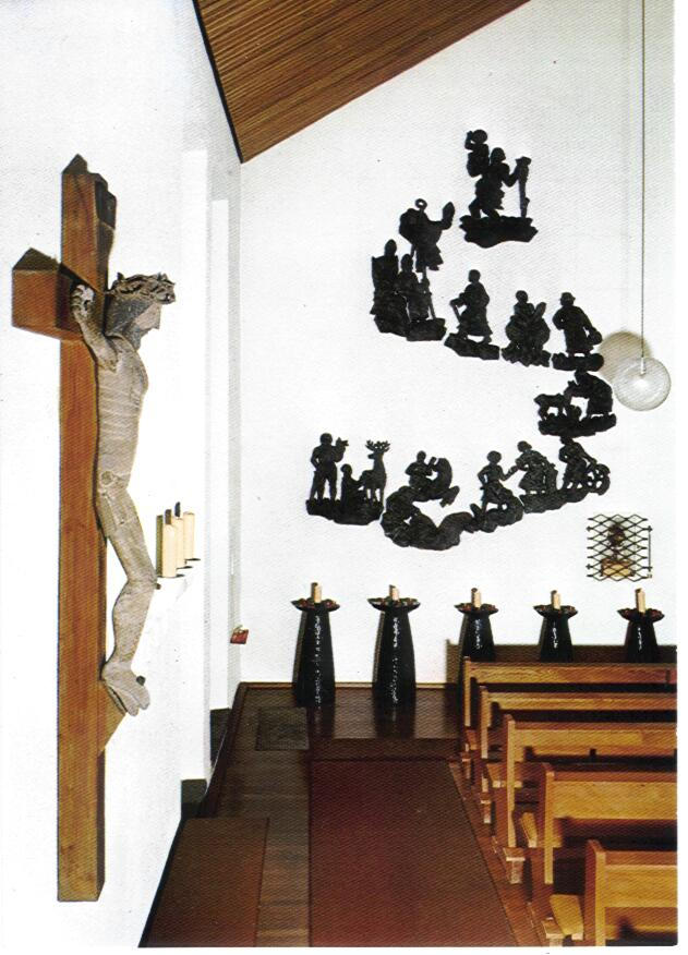 Nach der großen Brandkatastrophe im Jahre 1971 stattete der Bildhauer Eberhard Linke, Professor an der Fachhochschule Mainz, das Innere des Gotteshauses mit drei großen Bildwerken aus, u. a. mit dem großen Relief der Vierzehn Nothelfer. Seitdem kommen von Jahr zu Jahr immer mehr Pilger an den Nothelfer-Montagen (in der Fastenzeit) nach Berk. DIe Fußwallfahrt hat mehrere Ausgangspunkte. Zur Messe um 10.00 Uhr treffen dann auch zahlreiche Autopilger mit den Fußpilgern zusammen.